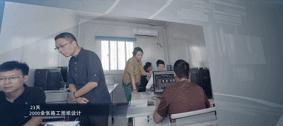 为更有效率地做好项目设计, 项目指挥部请来60多名工程设计师, 直接在现场合署办公, 仅用4天完成地下室 基础施工阶段图纸, 23天圆满完成项目12个专业、 2000余张全套施工图纸设计。
