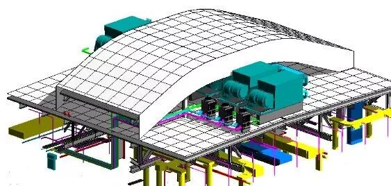 通过实体建模, 对砌体排砖、管线综合、机房布置 及桁架风管进行优化调整, 借助BIM模型的信息提取 获得更精确具体的采购及成本管理。 采用轻钢龙骨隔墙代替传统砌体施工, 摆脱传统湿作业同时提高施工效率。