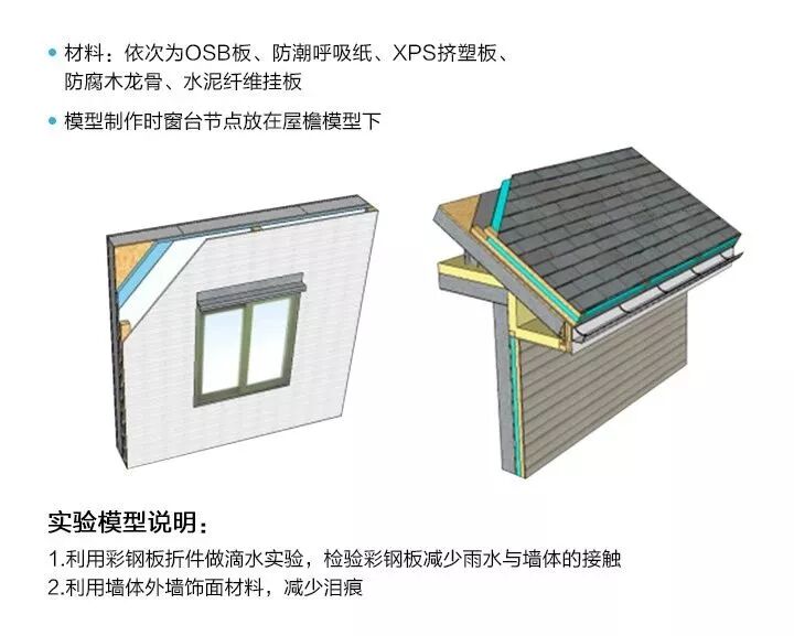 什么是屋檐的眼泪线,其实就是窗台和屋檐经过雨水长期作用下形成的一条有着明显痕迹的线条,这样的线条很影响房屋的整体美观,通过下图模型就可以知道轻钢是如何解决这个问题。