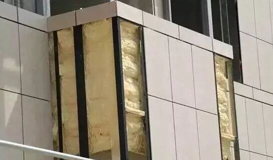 ▲ 干挂石材饰面的聚氨酯硬泡喷涂保温层