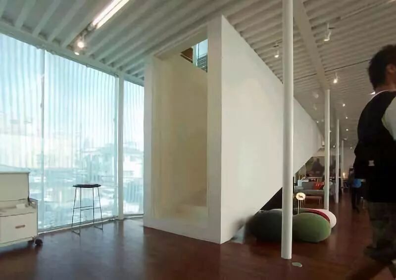 ‖刘康‖ 细柱是SANNA建筑作品中常见的特征,但在本案中除了细细的钢柱外,几乎看不出抗侧构件存在的痕迹。在参观本项目时,我们一开始是惊异于柱子的细,然后试图从建筑围护墙体中寻找支撑的痕迹,无果之后才发现原来建筑中部的楼梯坡道就是一个大大的抗侧支撑!