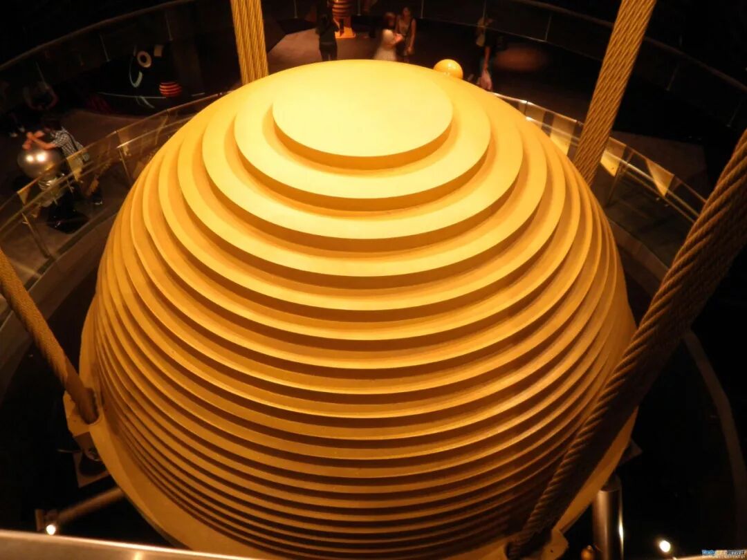 我们再来看看台北101大厦的阻尼器,他的布置则比较直观,并且也是开放参观的,围观群众可以非常直观的了解它的工作原理!