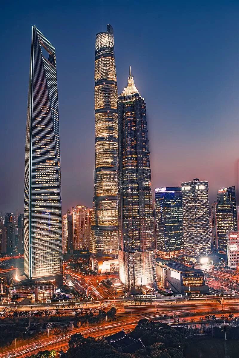下图角度看几个建筑的形状都非常清晰,金茂大厦和环球金融中心的形状都不是规整的板式建筑,而是复杂角度和修形后的形状,这对延缓涡流避免过大的晃动是有积极意义的!