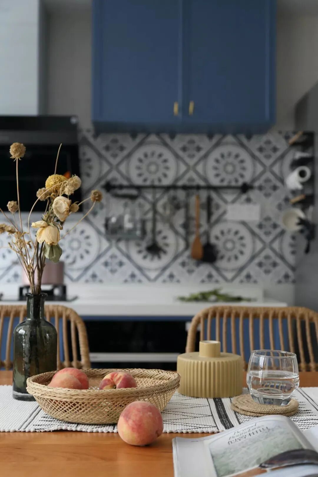 开放式厨房,L型橱柜收纳强大,唯美小花砖。厨房与餐厅的巧妙连接,在家的每时每刻都是放松和享受。