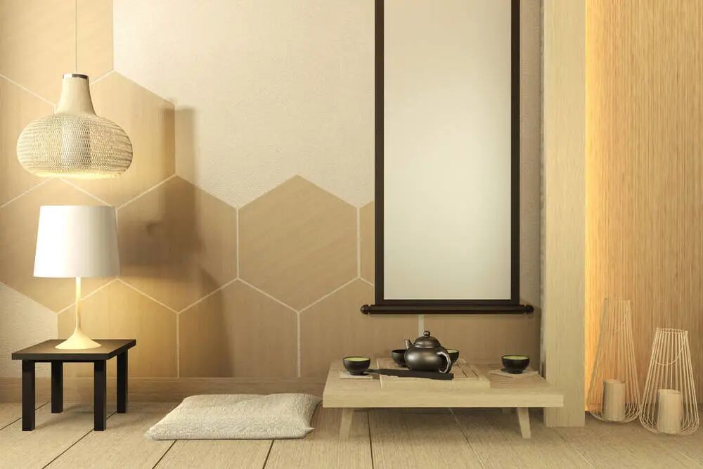 和式风格是一种适用于小房屋精装修的风格,因此不加修饰的浅色系的实木地板和强化复合地板最合适了,会显得空间不那么狭小。