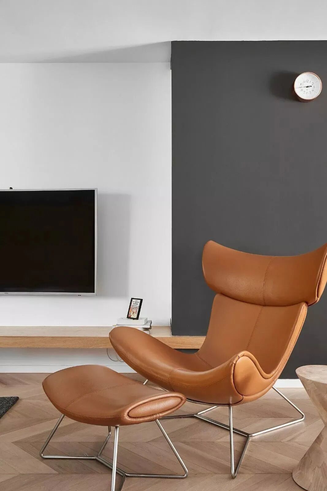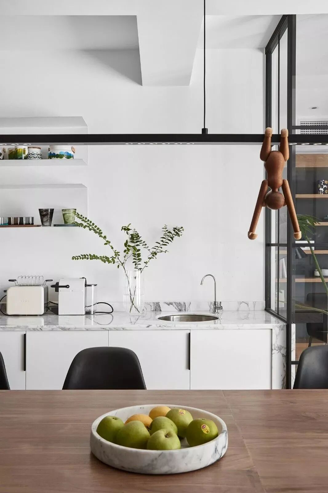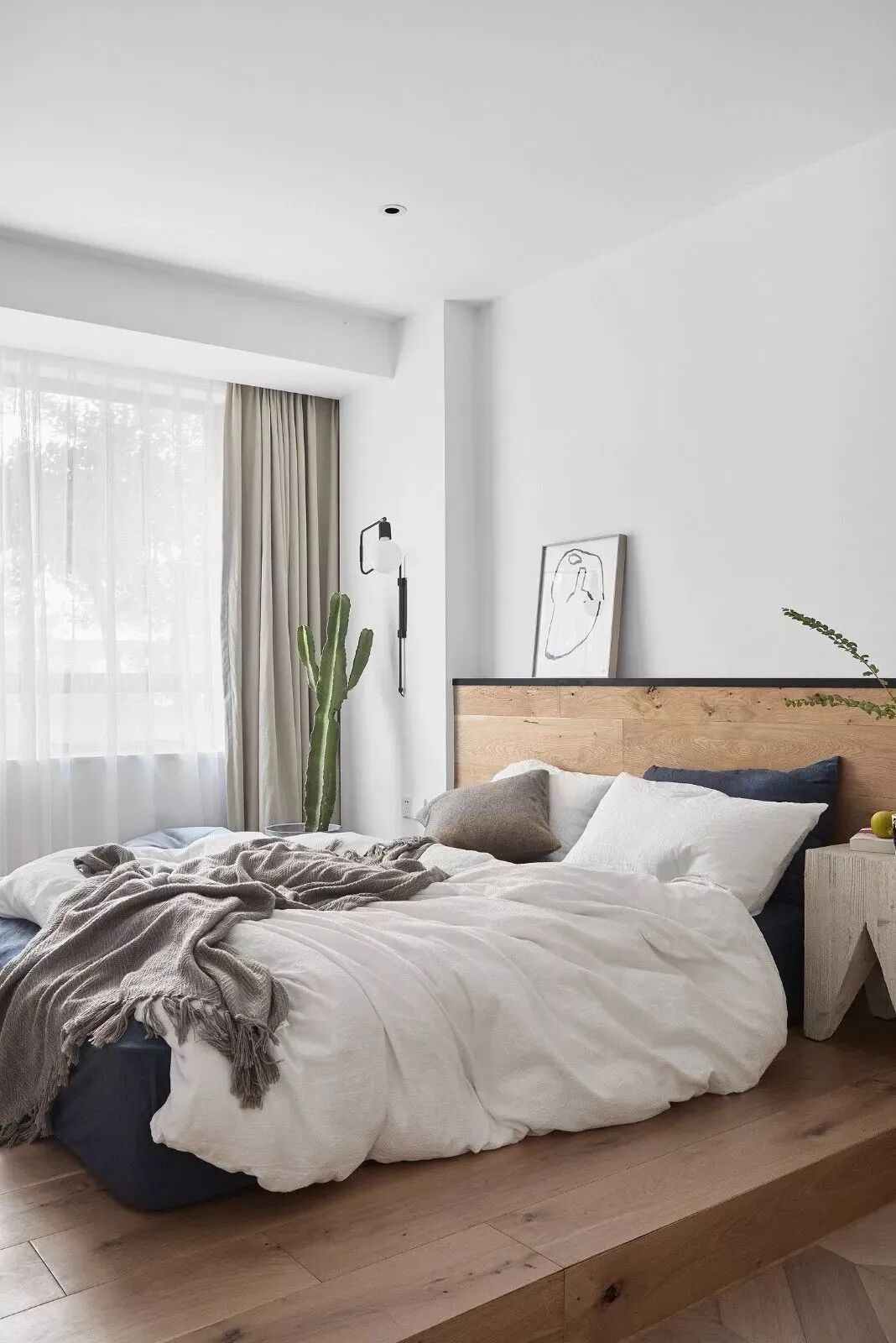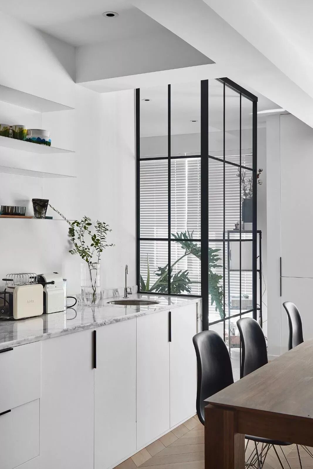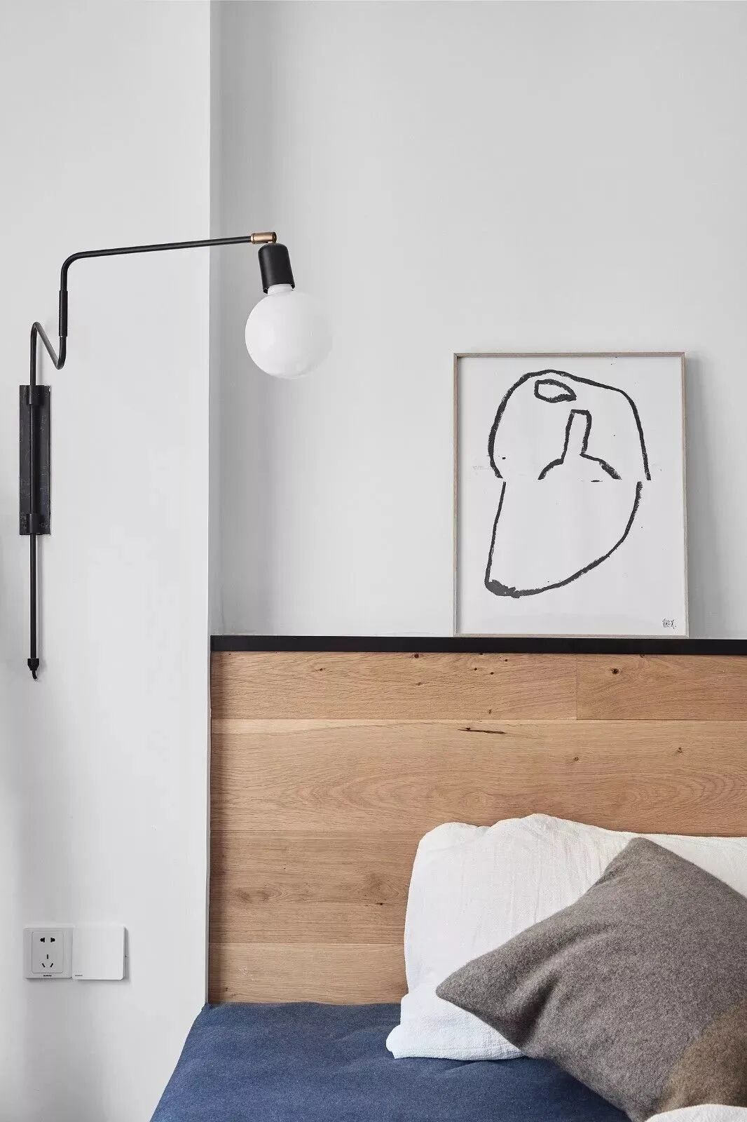 黑白对立下,木饰面与鱼骨地板,营造纯粹的美好