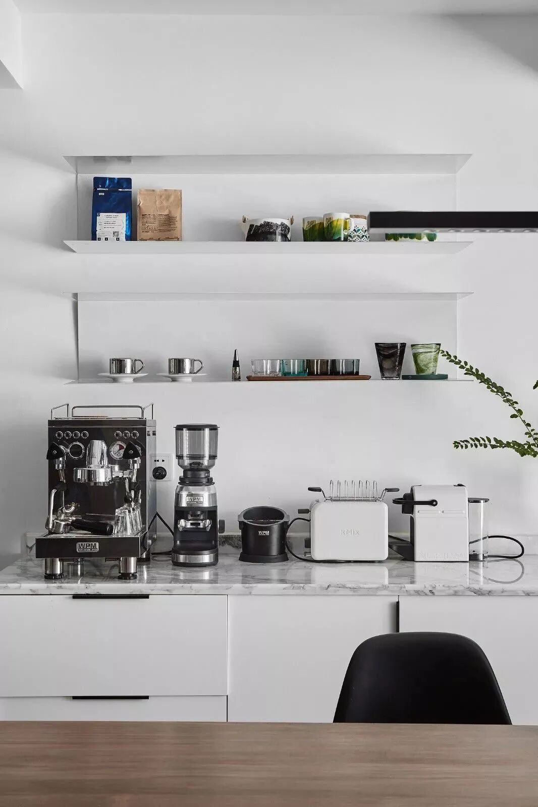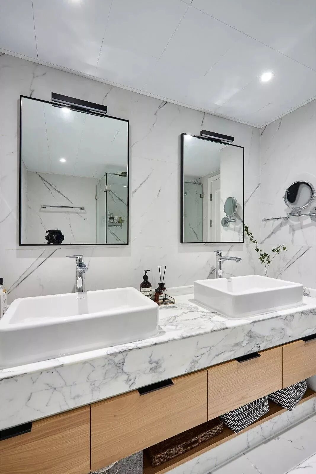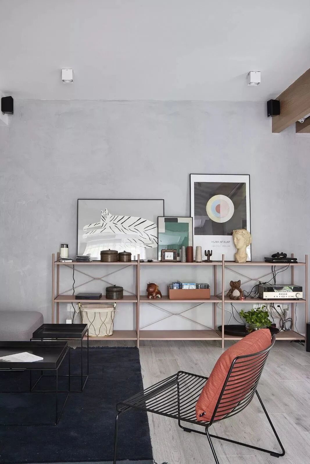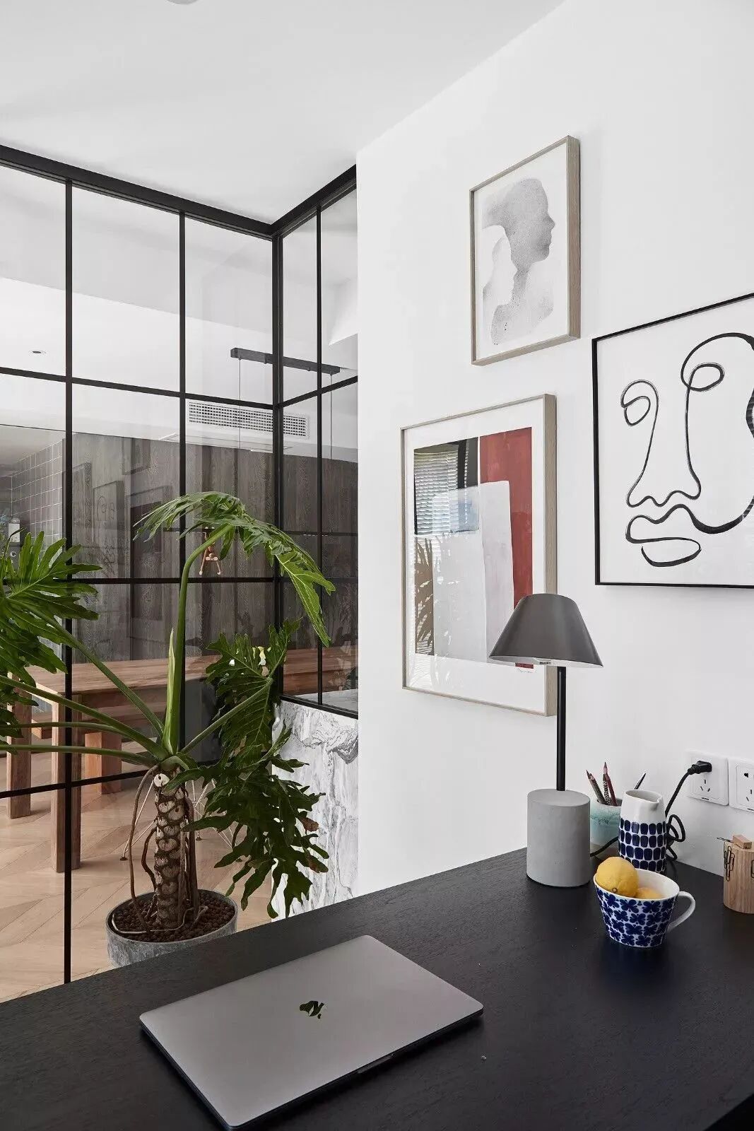 黑白对立下,木饰面与鱼骨地板,营造纯粹的美好