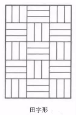 田字铺贴法就是将几块同样长度的长方形木板拼接成正方形,然后横竖更替,做成一个田字格的造型。