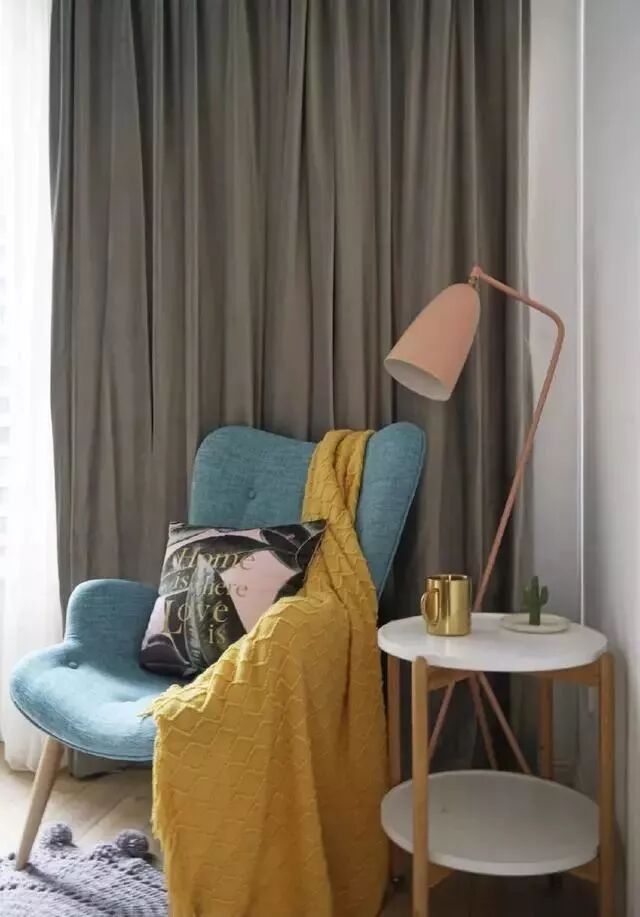 主卧一角,休闲单人椅搭配小边桌,很惬意的一个区域。