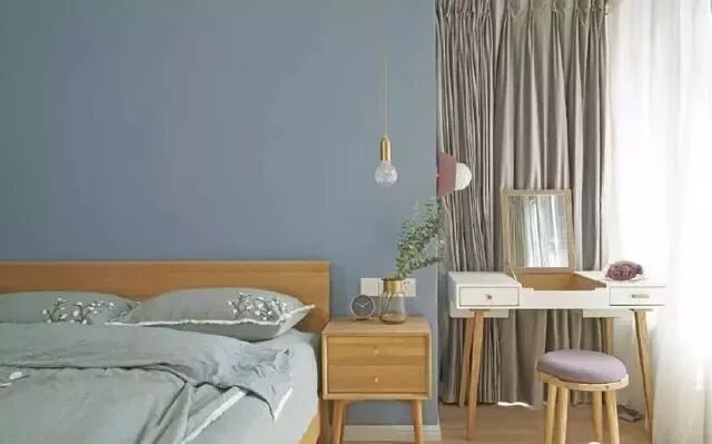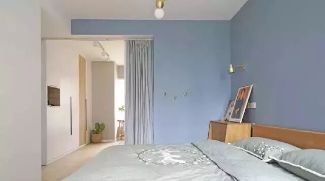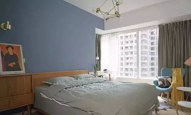 主卧同样是蓝色系,搭配金属灯饰很有质感。