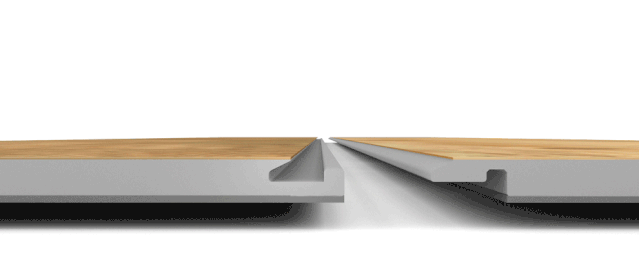 锁扣设计特意在地板中留有供胶流淌和凝固的胶腔,可以将地板准确锁定在设计位置上,降低了接缝变大和边缘起翘的可能,提高了地板的使用寿命。