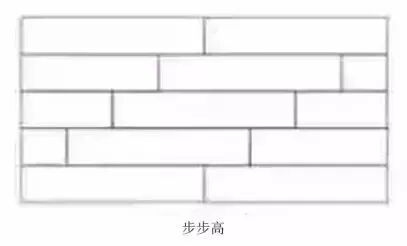 步步高铺贴法,也称阶梯铺贴法。它有点类似于工字型,但不光讲究排与排之间错位铺贴,还营造出一种像楼梯一样拾级而上的感觉,这种铺法在生活中也很常见。