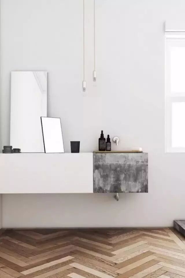 人字拼是最近家装中的红网款,人气比较高,比如上图是范玮琪的新家。两片地板拼成一个人字形,又是另外一种视觉感,好像看上去就很高级的样子。