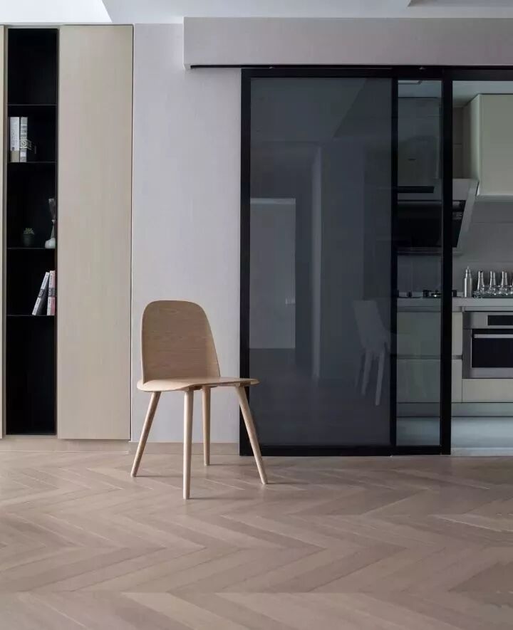 人字形是一种与鱼骨拼十分相似的拼接方式,如果你觉得鱼骨太复杂,不妨采用同样高端、大气、上档次的人字形。