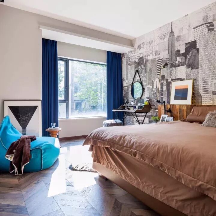还有一种斜铺工字,常见的地板一般都是和墙面平行的方向铺设,但是斜铺是沿着墙面45度铺设的,这种工字的又会呈现出另外一种视觉冲击力。