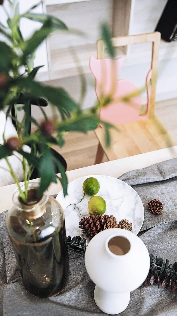 ▲ 简约的装饰品提升空间格调,丝丝绿意带来清新怡人的味道。