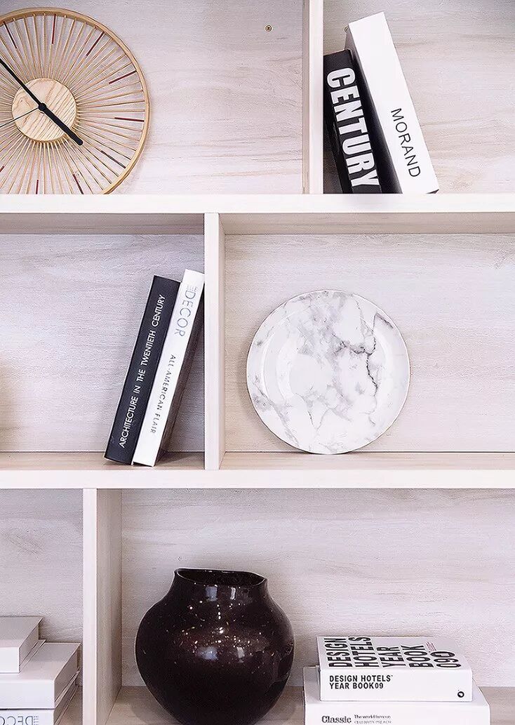 ▲ 餐桌椅后方设置了展示柜,摆放珍藏的书籍和装饰品,美观又实用。