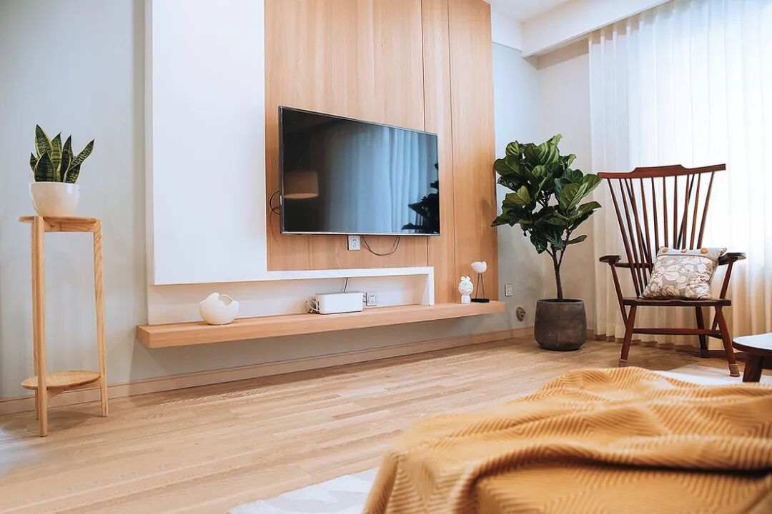 ▲ 客厅以白色与木色为基调,整体空间温婉柔和的同时带着丝丝清爽。