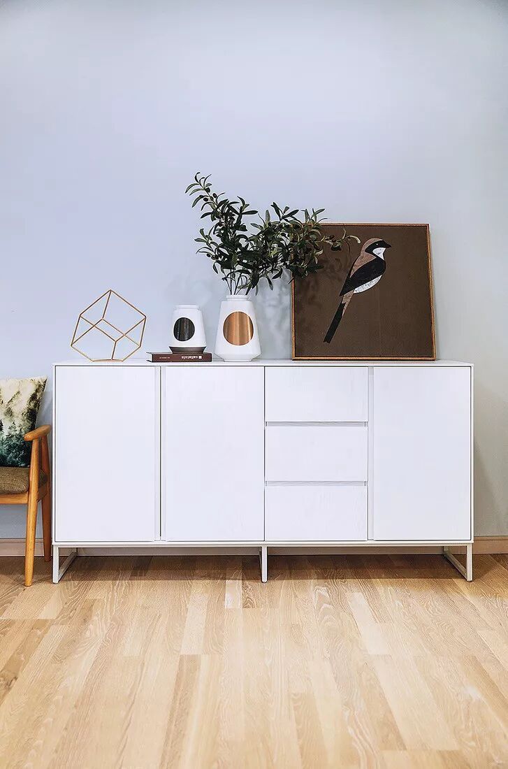 ▲ 入户左侧设置了简易的玄关柜,方便收纳常用的鞋子。白色玄关柜线条简洁,搭配精致的装饰品,瞬间提升品位。