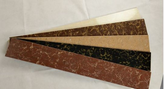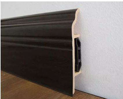 与木材踢脚线相比,它的价格更加便宜,其实就是仿造木材踢脚线外观,用贴皮呈现出木纹的效果,但呈现出来的效果不那么逼真,使用寿命也更加短,且贴皮可能容易脱落,家庭装修预算不多的业主可以采用这种材质。