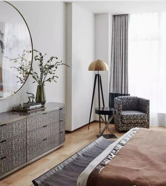 踢脚线颜色与墙面同色,这么做的好出就是可以更好地让踢脚线隐身,且不影响层高。常见的白色系墙面和踢脚线就非常好搭。
