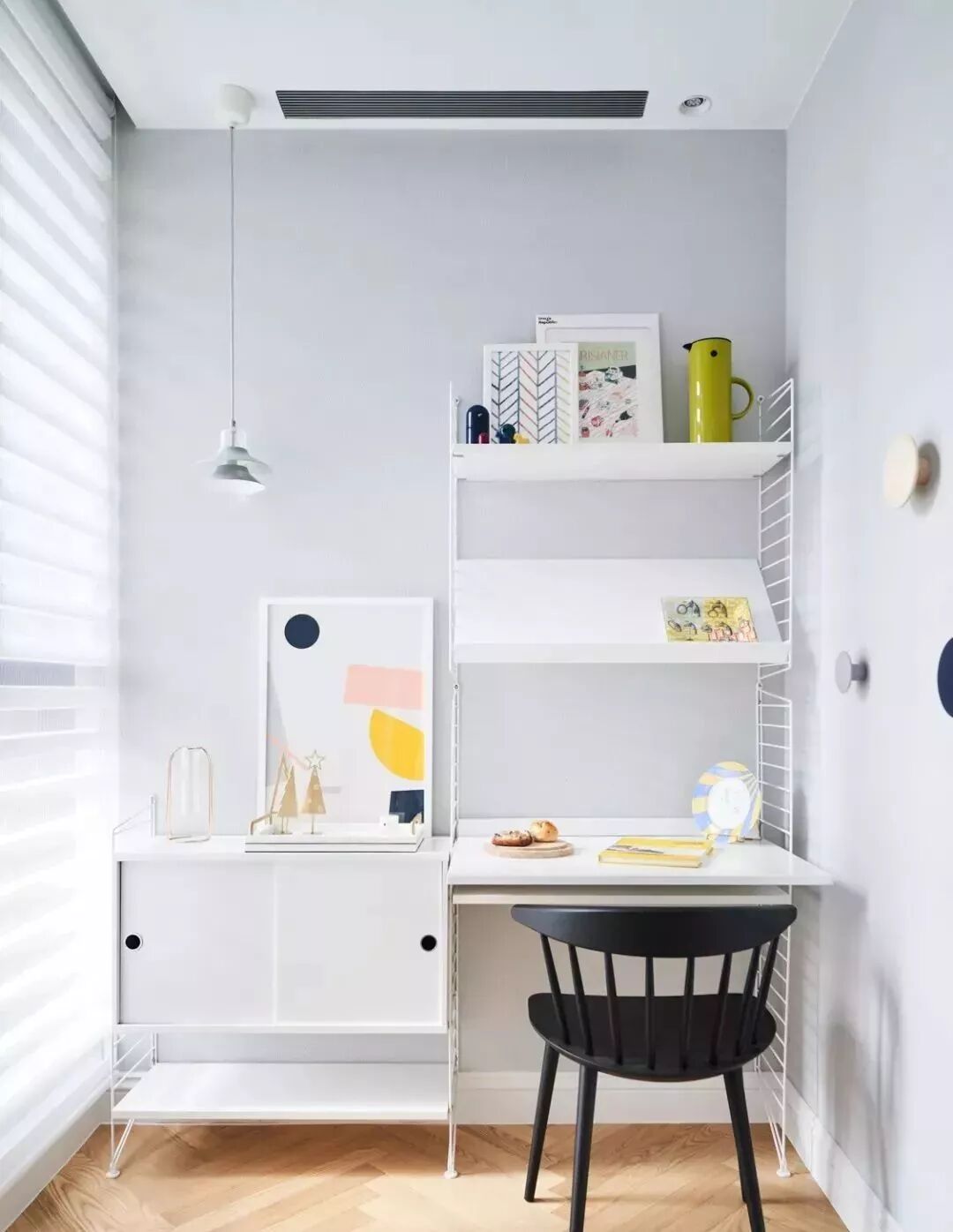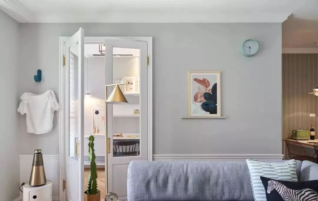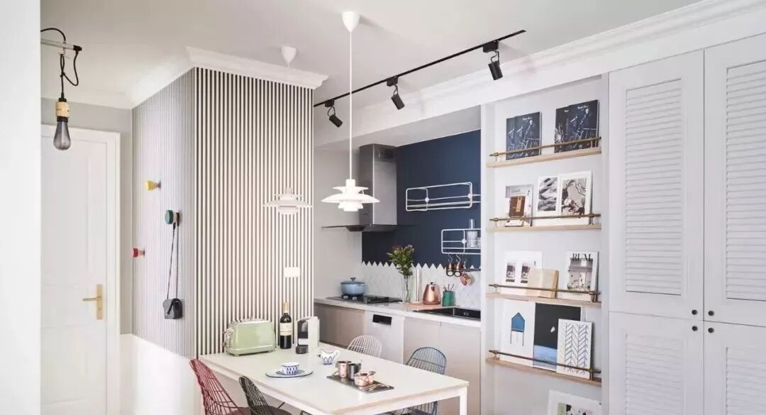 以明亮清爽的色彩为基调,佐以人字拼木地板和造型磁砖、壁纸带出设计美感。在墙面和布置上做了一些巧思,满足收纳同时作为居家装饰,配置出赏心悦目的幸福感北欧宅。
