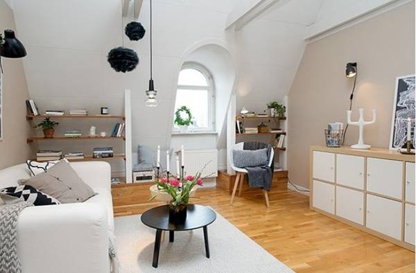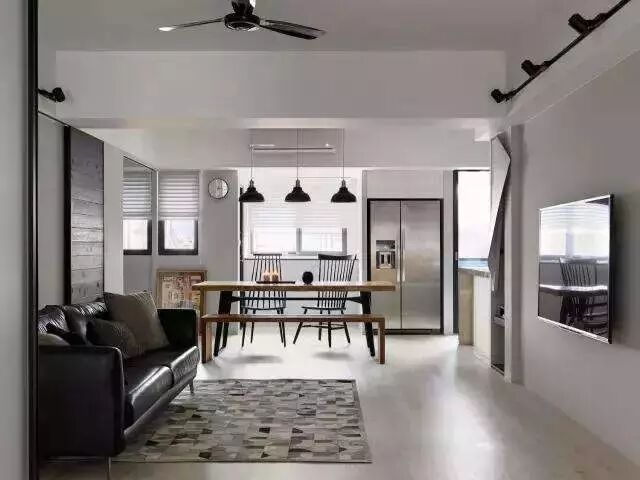 深茶色地板略带年代感,可以搭配浅色家具,整个空间就不会显示压抑了。