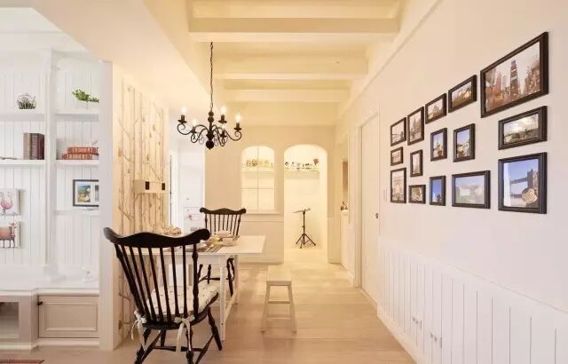 ▲ 田园风格实在白色的基础上,运用碎花,条纹布等的装饰,达到浪漫温柔的感觉,选择浅色偏黄或者偏褐的地板,整体感觉仿佛置身于花园之中。