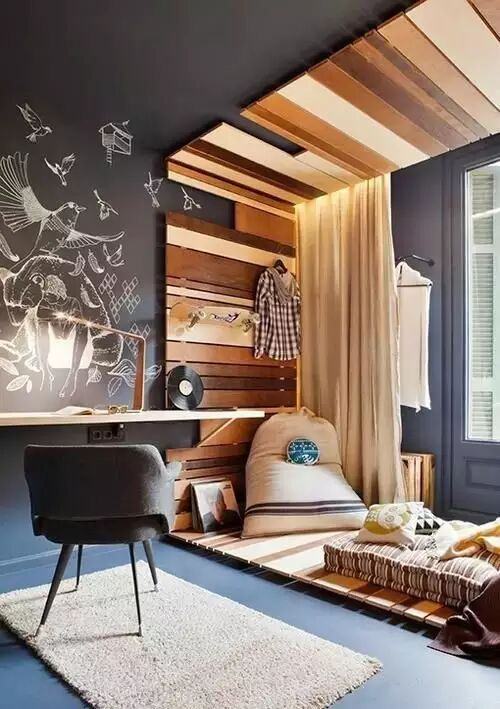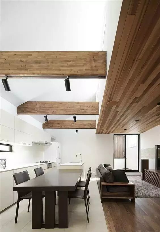 木地板独特的纹理,朴实又不失格调,带给人更多视觉上的冲击,故木地板也常被用于墙顶面装饰。
