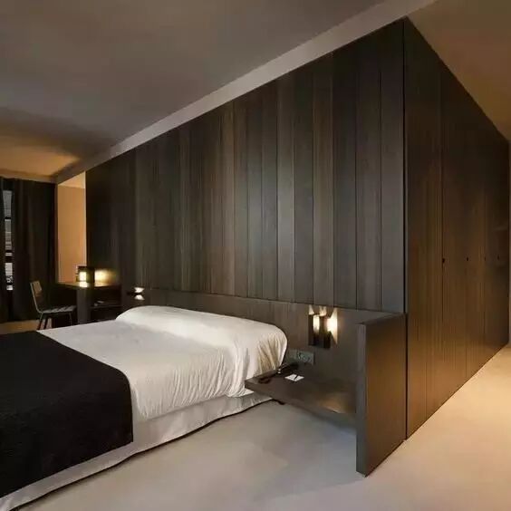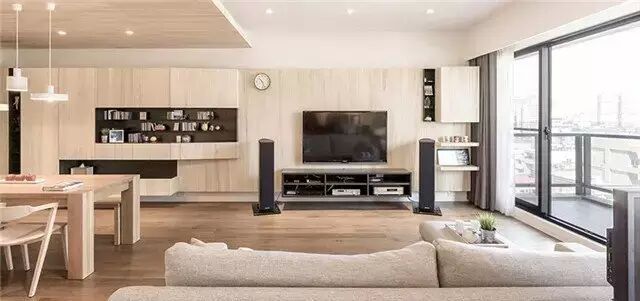 ▼ 木地板一般只宜小范围装饰墙面,不宜大量应用。否则装饰效果不是让人惊艳,而是让人感到狭窄拥挤了。且木地板毕竟不是墙面装修的常用材料,大量应用的话施工难度较大,还会延长施工周期。