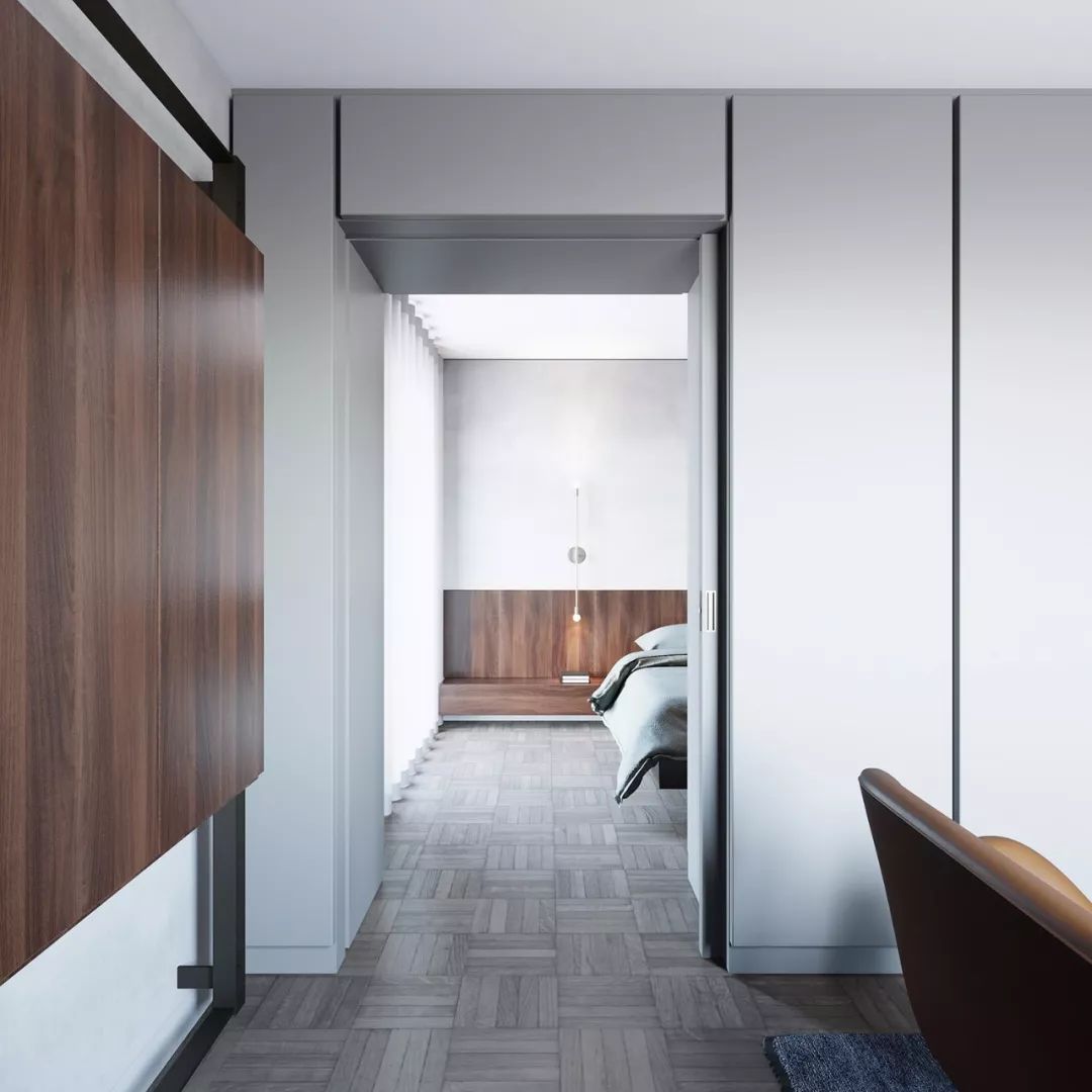 木地板独特的质地纹理,一旦延伸到墙面,视觉冲击感马上呈现,简约中散发出一股自然气息,营造宁静舒适的氛围再合适不过了。