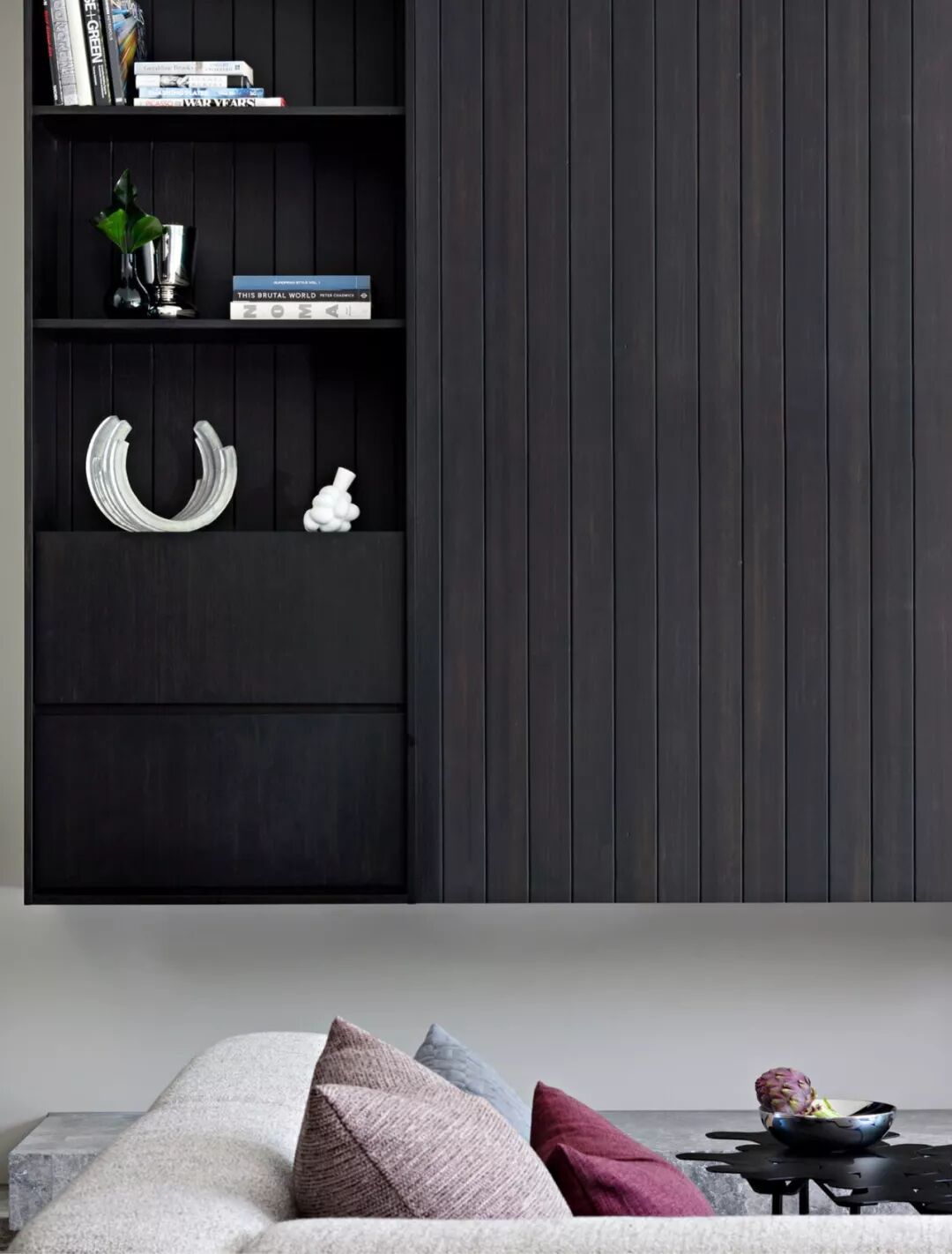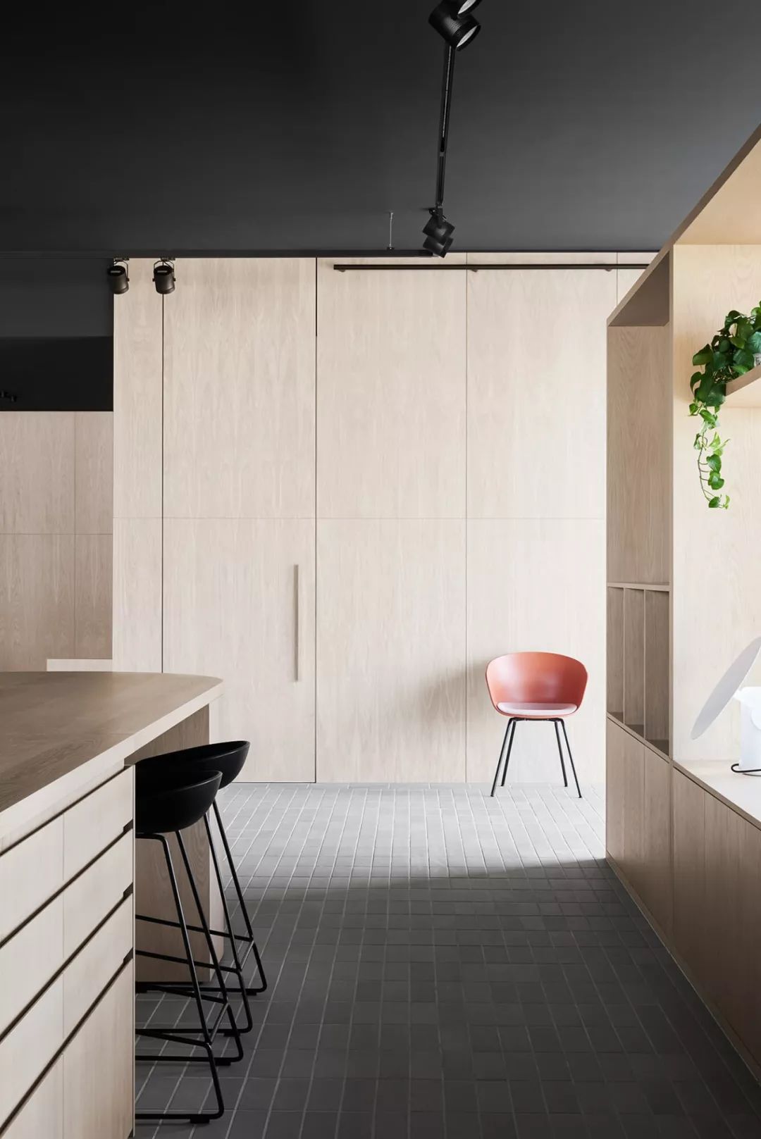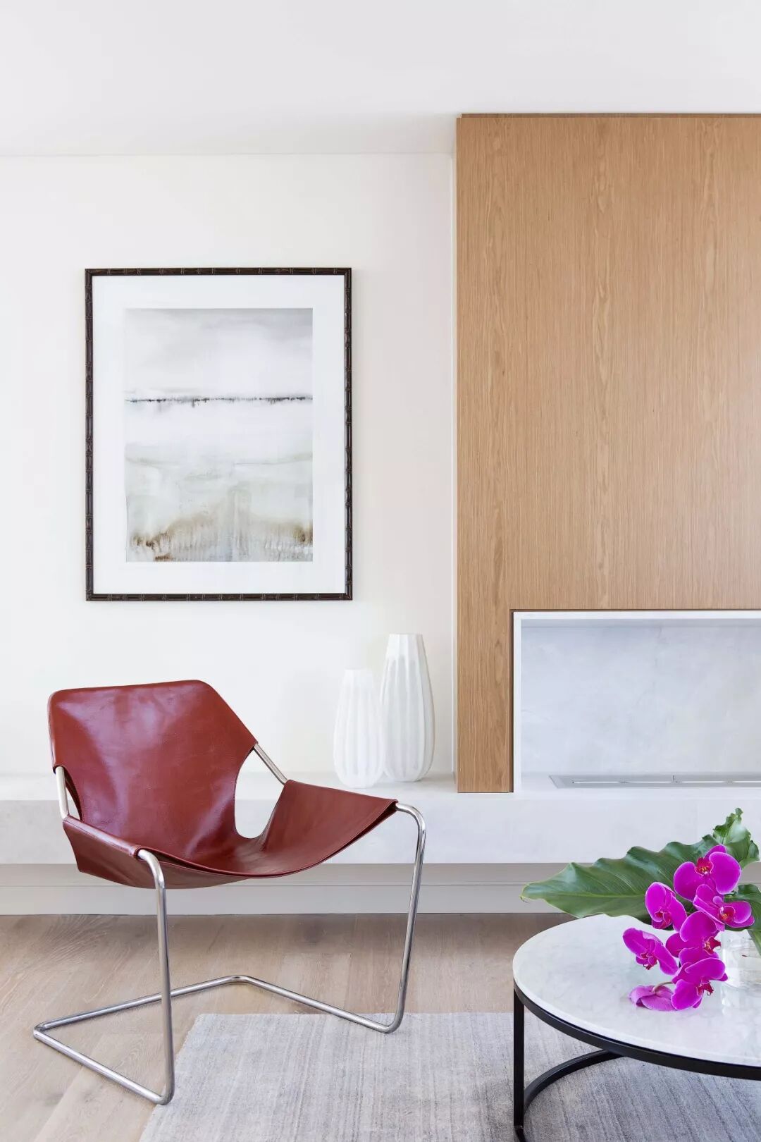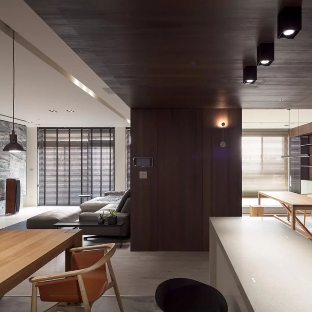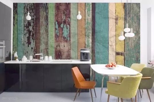 木头墙,搭配在色彩中的运用也是游刃有余,沉静中显出跳脱,沉稳中显气质,非常具有艺术性。