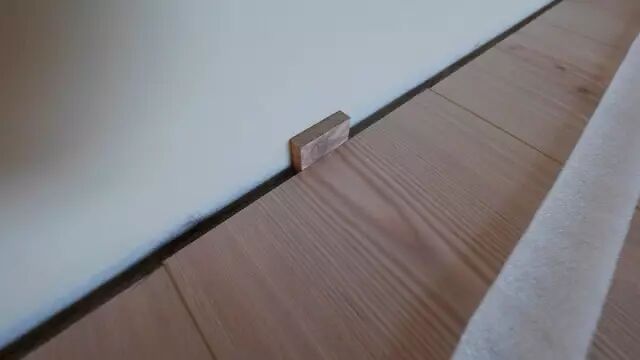 铺装地板时周边要留足缝隙,尤其是门口、壁厨、阳台等区域都要留缝隙,保证预留缝隙均匀,铺装长度超过8m时应做隔断及过桥处理。如果墙边与地板间顶的很紧,会出现安装后大面积响。