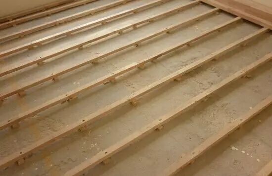 所以,垫木与龙骨铺设高度不宜过高,应控制在5-6cm之间。龙骨与龙骨的间距也应以30cm为宜。