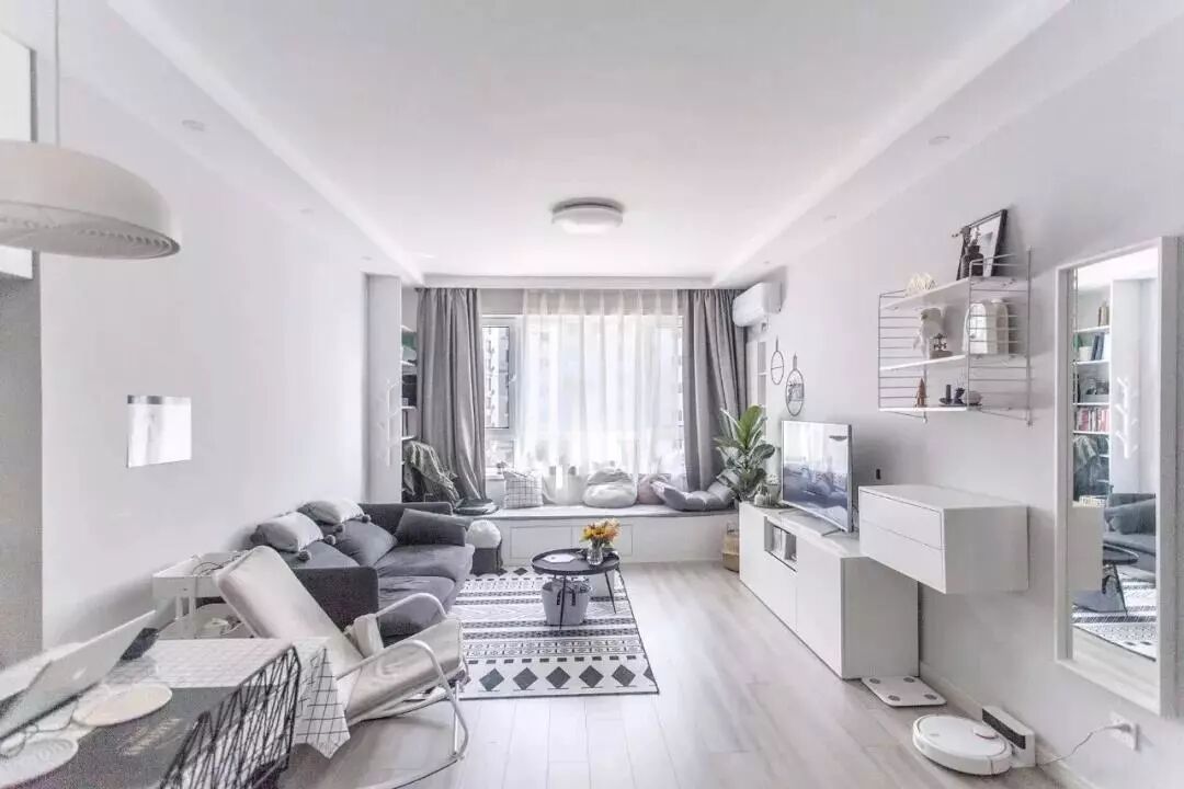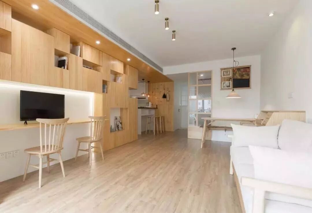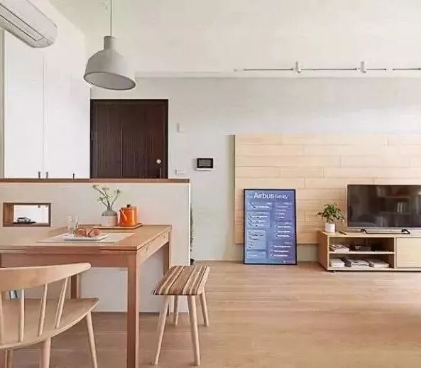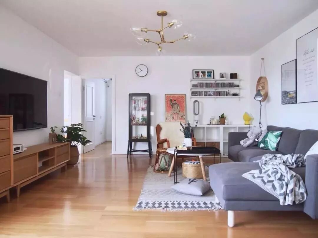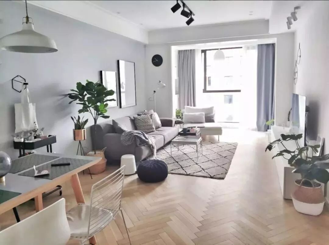 如果客厅面积不大,光线一般甚至是暗淡,建议使用浅色系木地板,选用浅色显得客厅不会产生很明显的分区,不会在视野上使空间变得狭小,反之,可以让客厅显得空间更大。