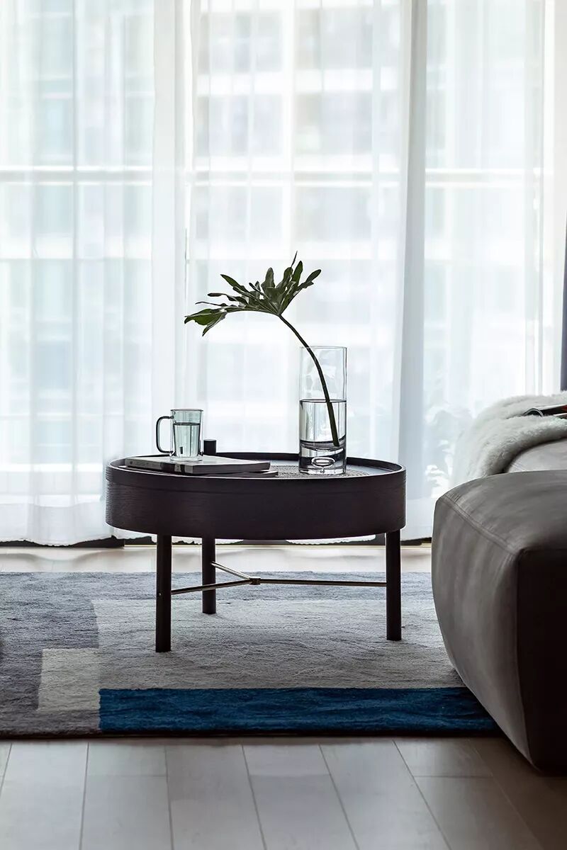 ▲茶几上摆着插花花瓶、水杯与书籍,整体显得轻松而惬意。