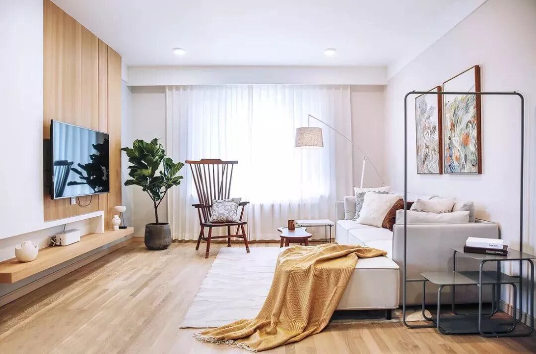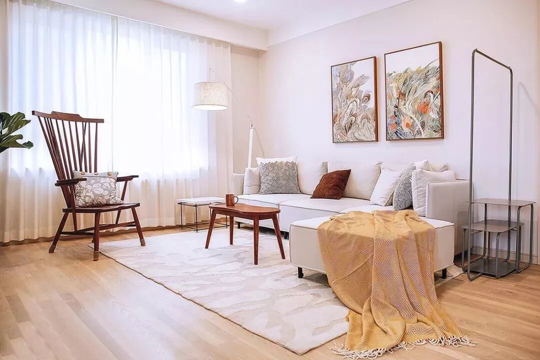 ▲ 客厅以白色与木色为基调,整体空间温婉柔和的同时带着丝丝清爽。