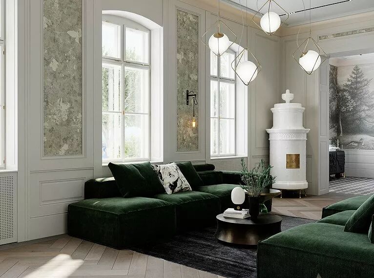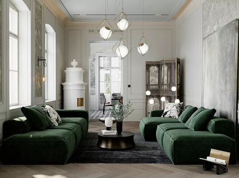 矜贵的墨绿色沙发,放置于客厅,醒目又大气。