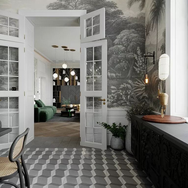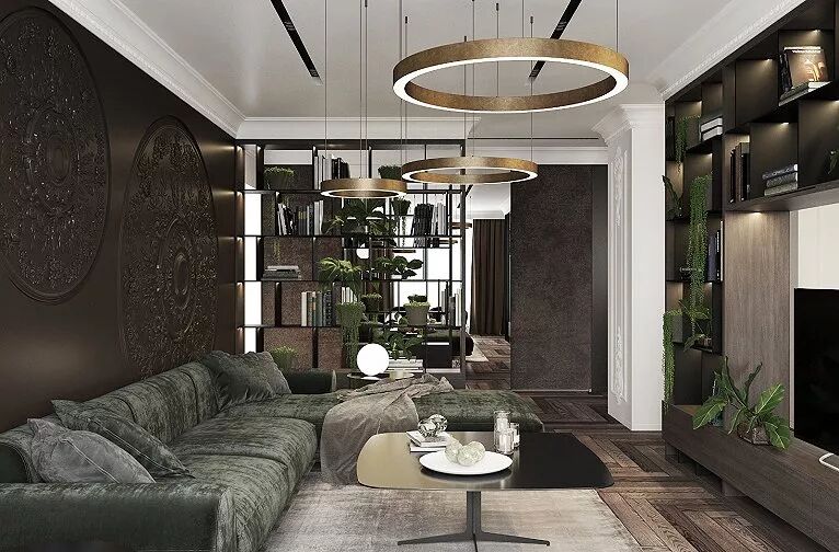 鎏金吊灯、丝绒沙发、木质家具,不同元素的完美融合,层次丰富而带有格调。