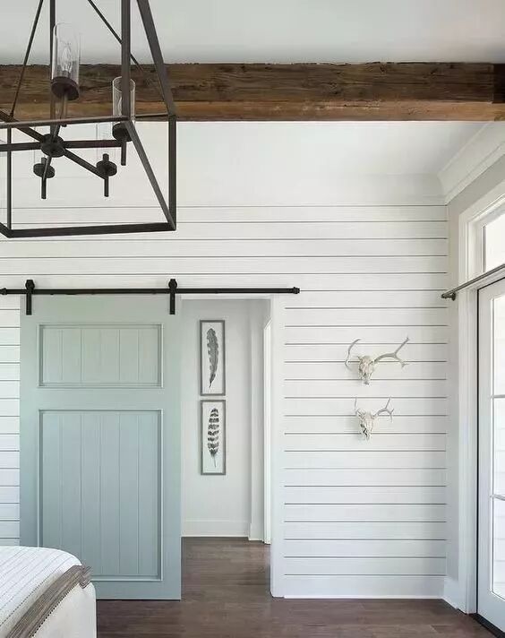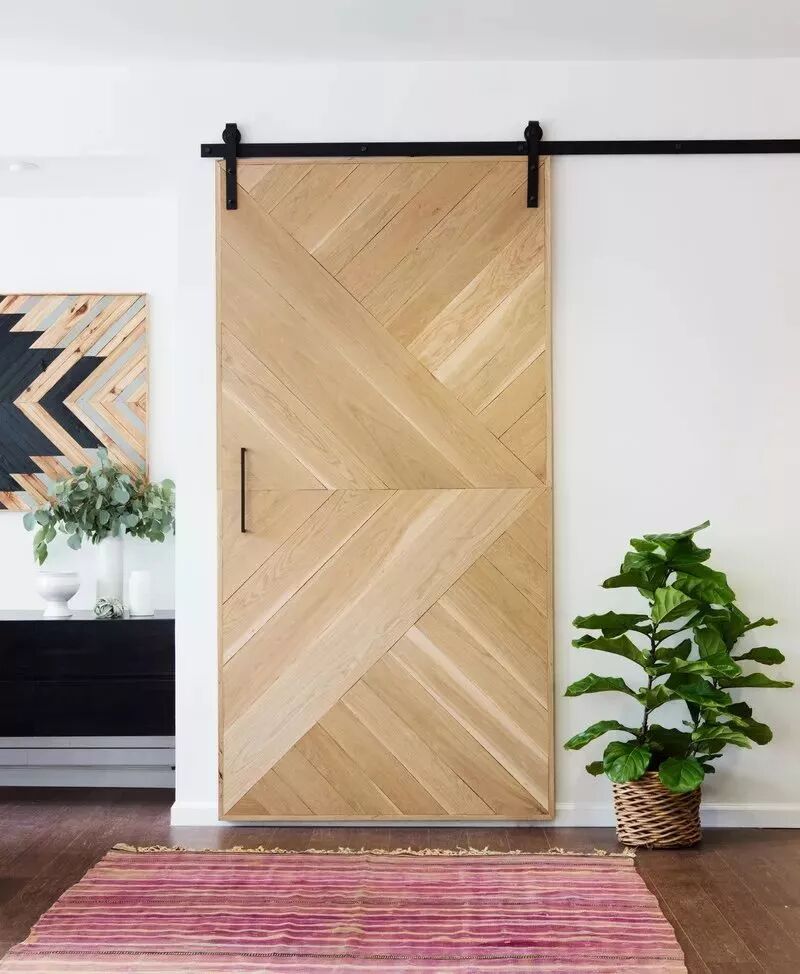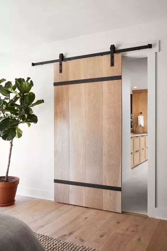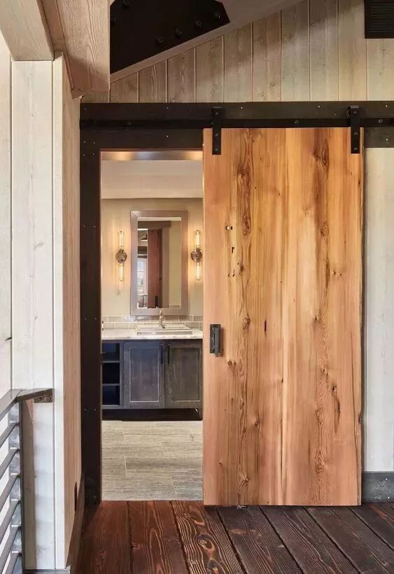 谷仓门门板材质多以实木和复合实木为主,有时也会加入玻璃等元素。门板款式也较为多样,可以是一整块,也可以是多块拼接而成。