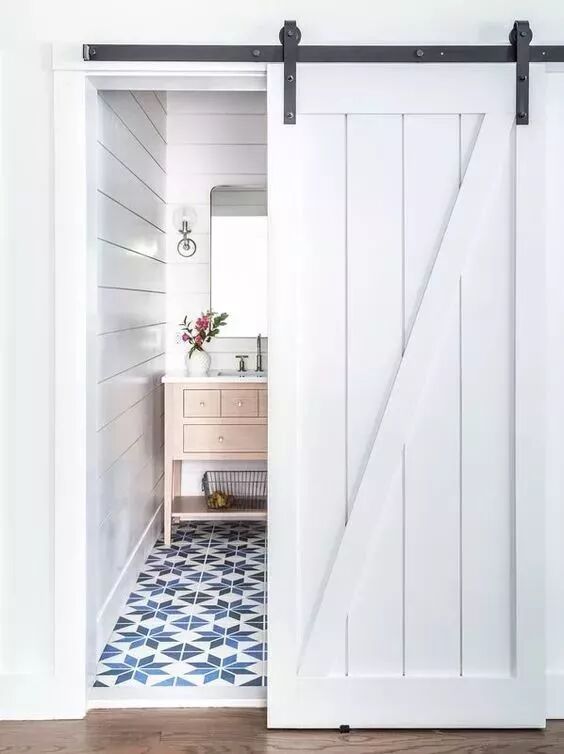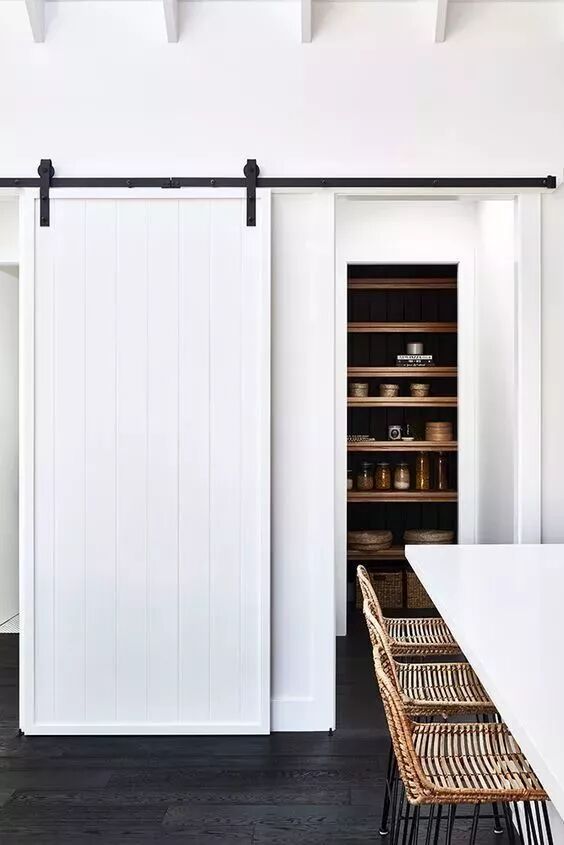 谷仓门是一种吊轨外置的推拉门,以其出众的颜值收获了一大批的粉丝,可以让家表现出与众不同的气质。吊轨材质主要是金属和不锈钢,颜色则建议使用百搭耐看又耐脏的深色系。