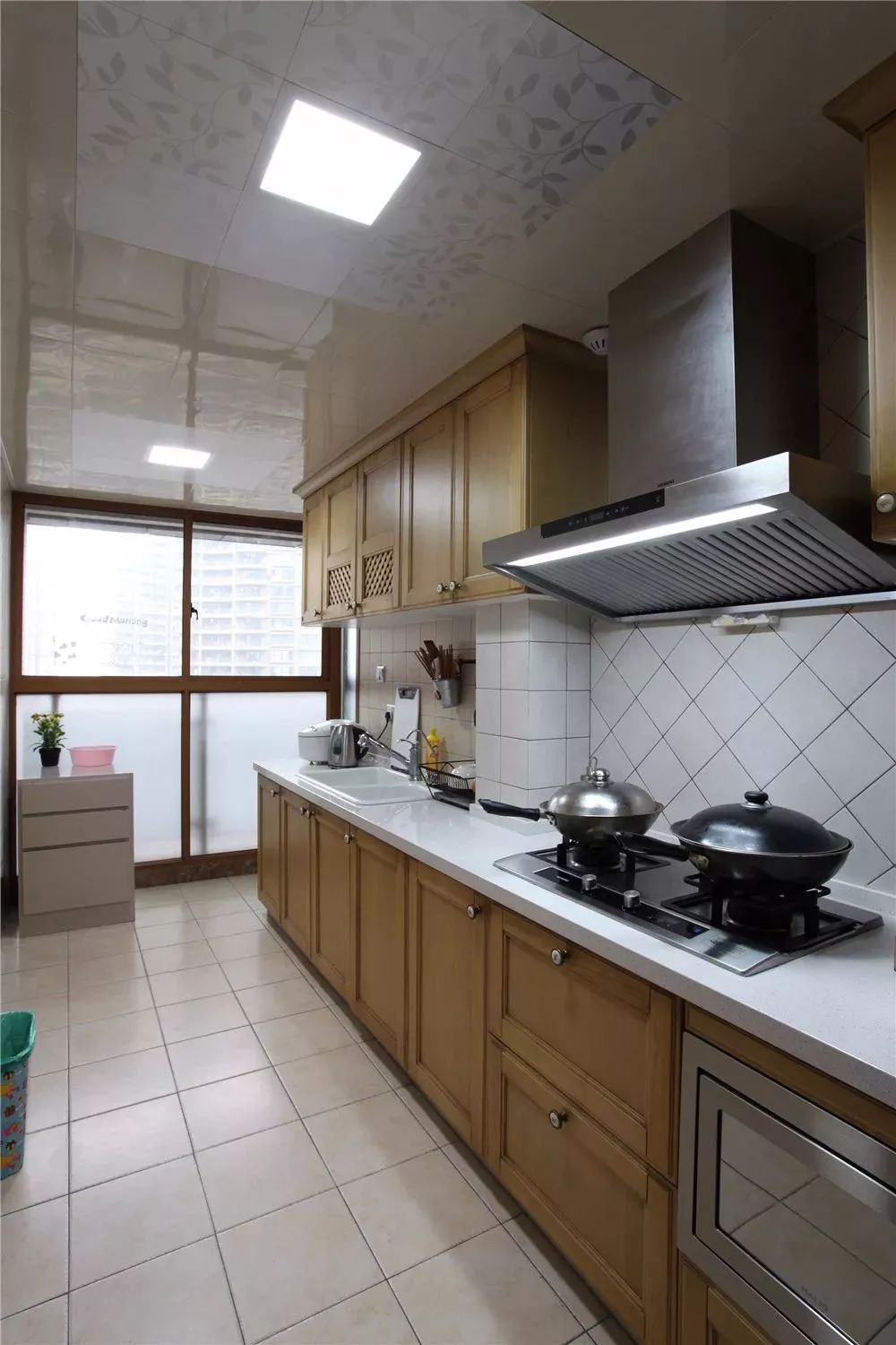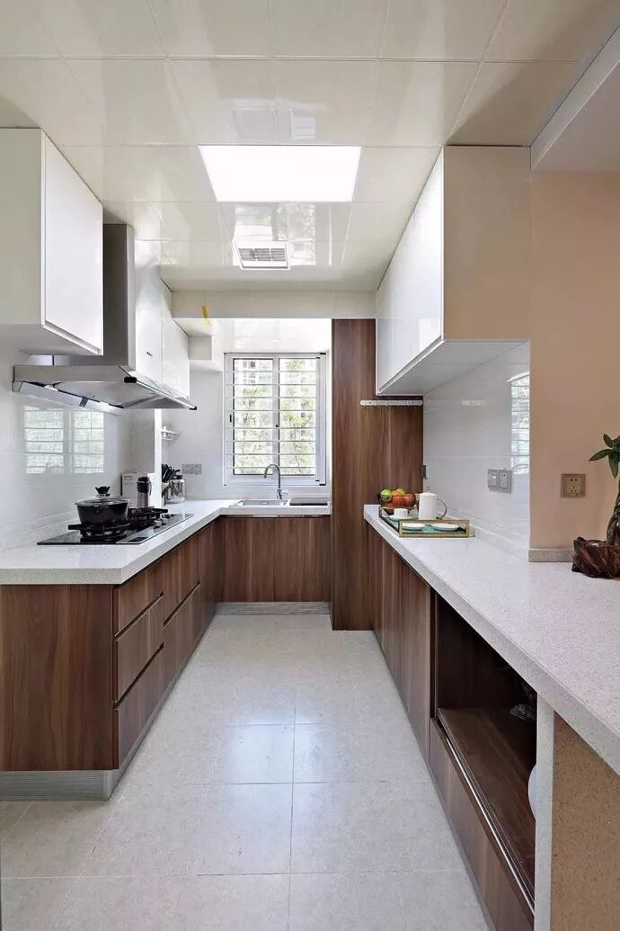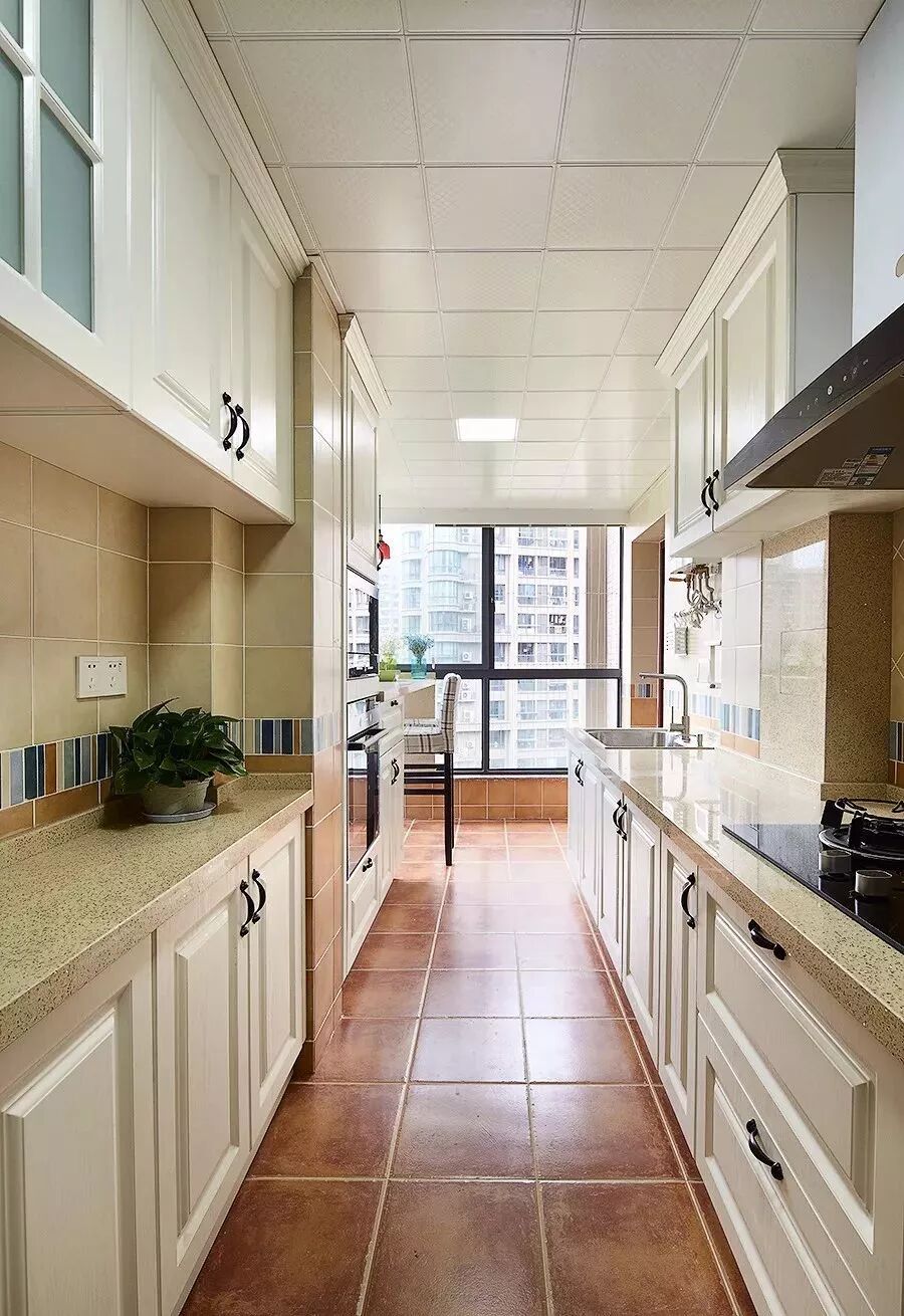 把整个小阳台包进来之后,能够让厨房显得更加的宽敞,而且也可以多做一些橱柜、吊柜,就不用担心厨房内的储物空间不足了。
