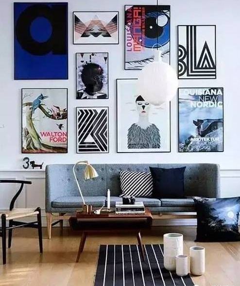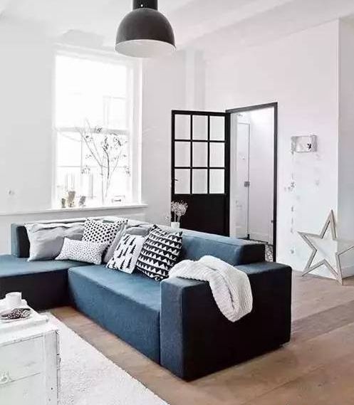 不同纹样的黑白灰靠垫,怎么搭配都很协调,配上白色的地毯,满满的北欧风!