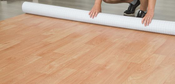 1、市面上的销售的地板革产品,一般是成卷出售,一是为了方便产品运输,二是方便我们的使用。所以,我们在地板革铺设前,需要将产品卷开、摊平,让产品更好的伸展开来,必要时,也可以放置物品将表面压平。注意,一般需要静置一天,室内温度不能太低。
