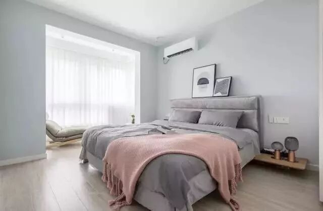 灰色作为简约时尚的经典色,非常耐看。不过灰色要刷得高级并不容易,这很讲究整体氛围的色调搭配,不然容易显得压抑,通常灰色墙面会搭配柚木色或浅色的木地板;用灰色墙面的卧室,可以在床单、窗帘等软饰采用比较活泼的色调。