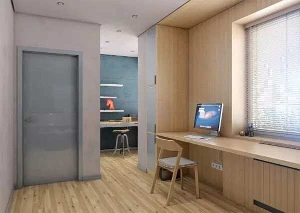 ▲用于办公和学习的区域选了大面积使用原木色木板来装饰,令整个空间自然拥有一分宁静又放松的氛围,同时浅淡的木色又保证了空间有着明快而柔和的光线。