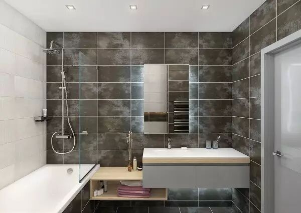 ▲相较于房间的其他区域,卫生间则选择了较深的瓷砖来装饰,深色墙壁与白墙壁相拼接,增加了空间的层次感。并且为了节省空间,主人将淋浴与浴缸相结合。