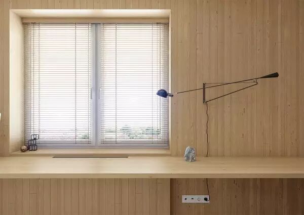 ▲学习区的大扇窗户与大面积的木板形成了巧妙的搭配,窗户为此处提供了充足的光线,通过木板对光线的作用,使得该处拥有极佳的自然光线。主人还为此处搭配了深色金属质地的装饰物,其中很有设计感的台灯好看又实用。