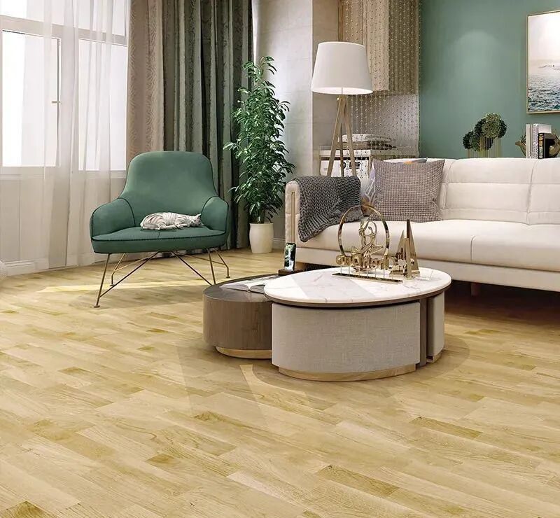 浅色地板:比较百搭,可以给予人一种恬静清新感,无论田园风、北欧风还是异域风的家装,都能与之巧妙搭配。如果居室空间较小的话,还可以使你的居室看起来宽敞明亮许多。