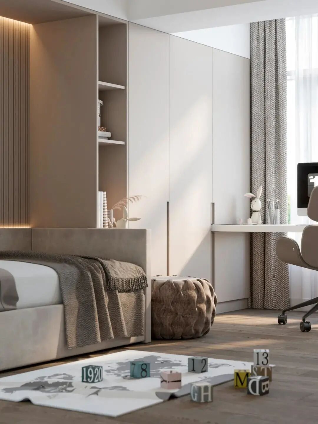 玩具、摆饰方面,合适就好,建议不要太多。这类物品过多,可能会分散孩子的注意力,孩子休息时未必能静下心来。